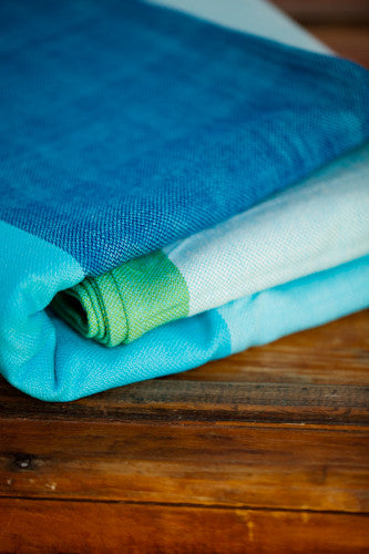 Tahoe Exclusive Girasol by WovenWraps.com is named after the beautiful colors of the mountain lake town, Lake Tahoe.