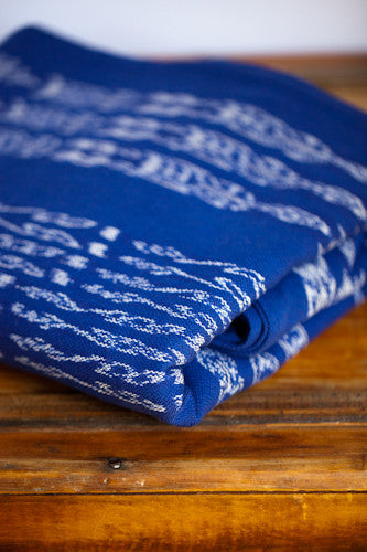 Girasol Blue Ikat Woven Wraps are soft, smooth right out of the box. They are woven in Guatemala using the traditional weaving methods of the Mayan Indians. These wraps are woven with pure cotton and no chemical treatments are used. The weave is a diagonal weaving technique which produces a slight stretch and give for the most comfort for baby and mama. These wraps are very soft, supportive, and versatile. They fit parents of all sizes and are suitable for wearing baby on your front, side, or hip. Machine wash.