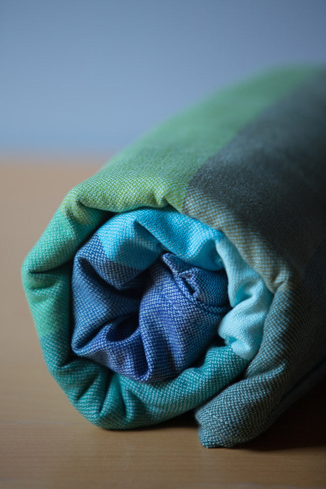 Girasol Woven Wraps are soft, smooth right out of the box. They are woven in Guatemala using the traditional weaving methods of the Mayan Indians. These wraps are woven with pure cotton and no chemical treatments are used. The weave is a diagonal weaving technique which produces a slight stretch and give for the most comfort for baby and mama. These wraps are very soft, supportive, and versatile. They fit parents of all sizes and are suitable for wearing baby on your front, side, or hip. They are also machine washable.