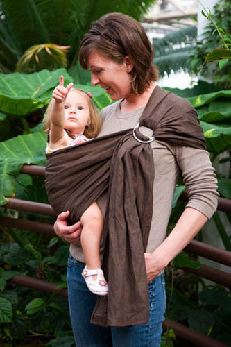 Your cutie will be a hit with the friendly Cariocas while riding at eye-level in this easygoing, but sturdy, sling of rich Chocolate-Brown. Whether youre taking in the lights of the city, climbing Corcovado, or sipping fresh juice at Ipanema; Rio will let in every marvelous sea breeze, with silver SlingRings adding the perfect glimmer.